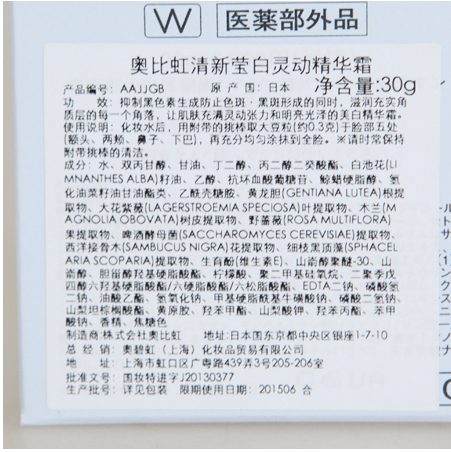 | 产品名称 : | Albion 澳尔滨 奥比虹 清新美白 莹白灵动精华霜 30g(原:清新美白精华霜 50ML) |