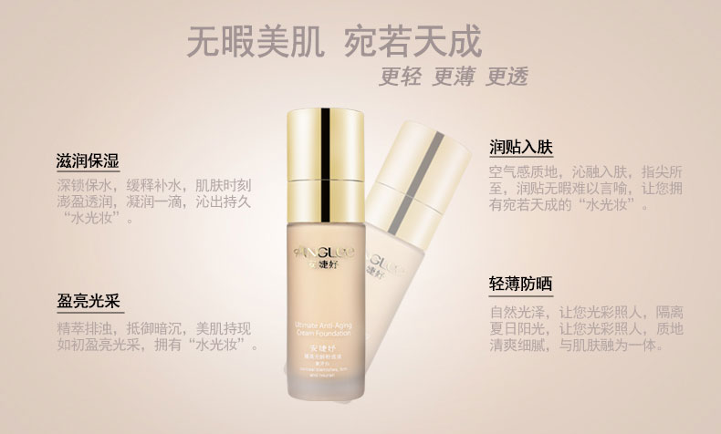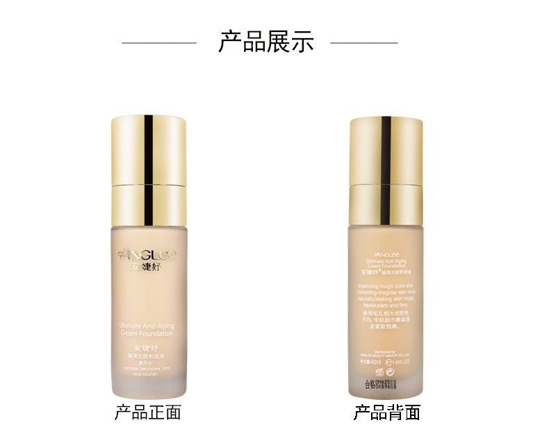 | 产品名称 : | 安婕妤日化 臻美无龄防晒粉底液 40ml象牙白 358 |